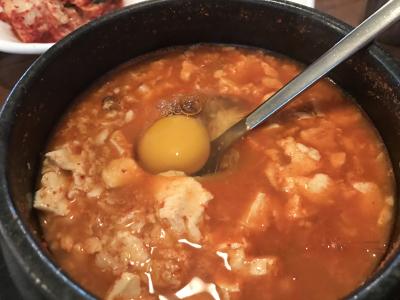 朝の早い時間から、営業しているのもありがたいし、芸能人御用達で、その味も保証済み。駅からは、ちょっと歩くので、場所の確認を。地元の人たちが大勢来てたので、良い感じ。味も美味しいし、生卵は、自分で入れる。パンチャンがたくさん付いていて、韓国らしい、朝食を味わえました。