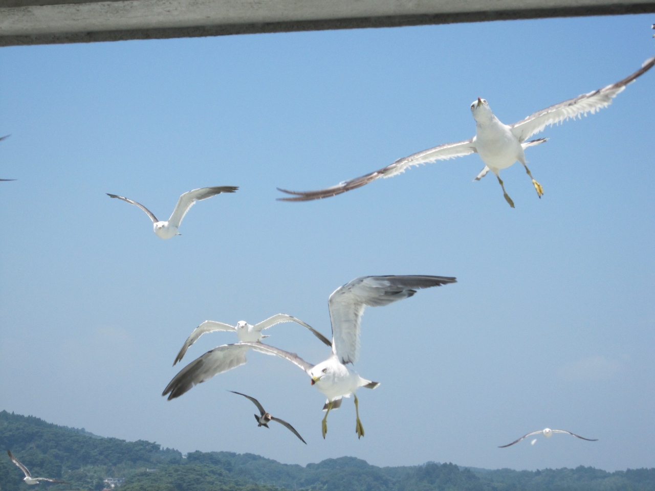 手に乗せたえびせんをカモメにつまんでもらったり、投げ上げたえびせんを空中でキャッチさせたり、カモメとの交流もとても楽しかったです。- 旅行時期