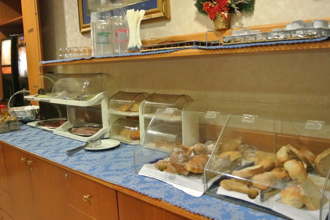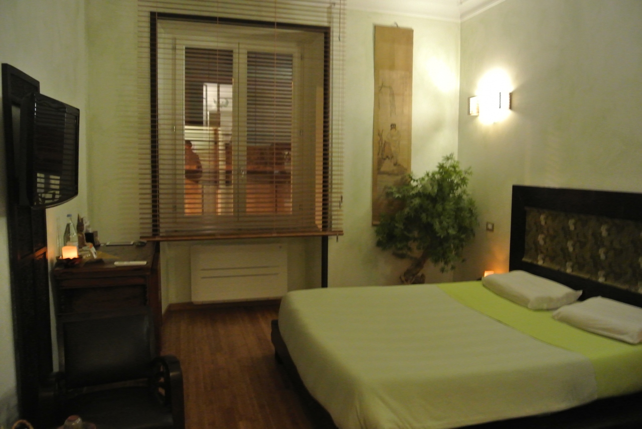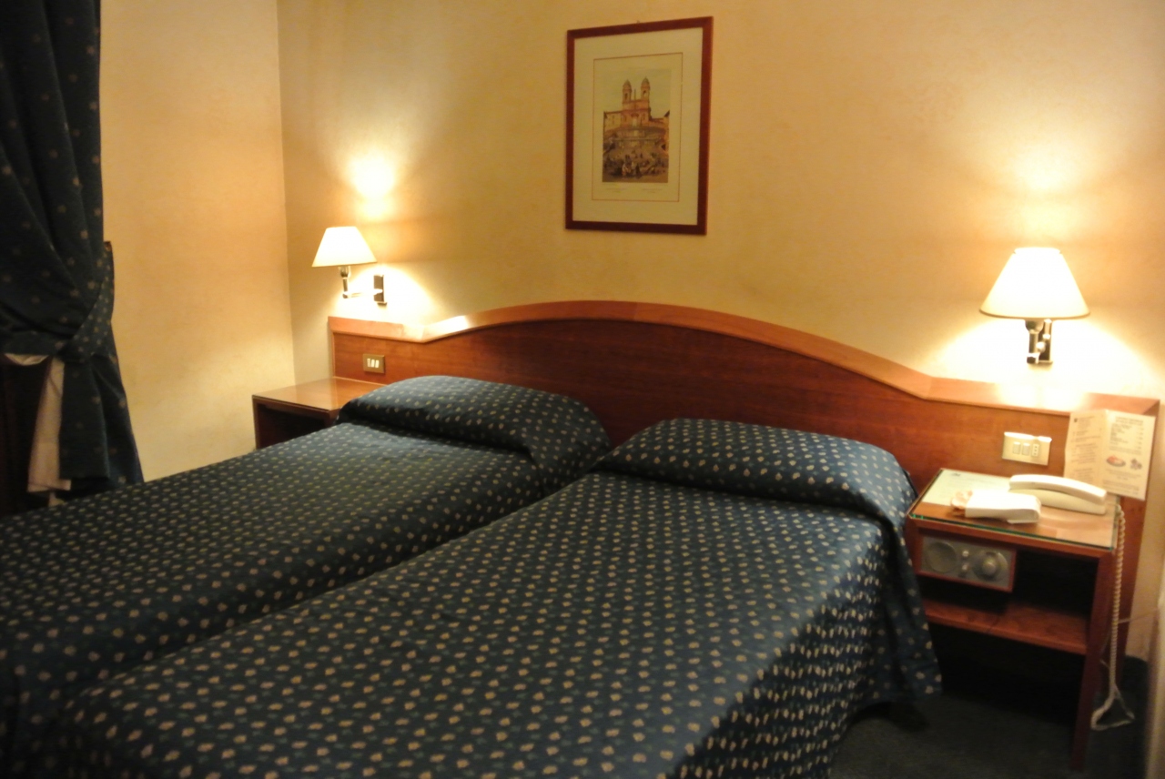 スパバス付きのデラックスルームに滞在。コロッセオの地下鉄駅からは10数分、トラムの停留所からは5分程度のところにあり、周囲は静かな環境です。駅まで多少歩くので観光には不便にも思われますが、毎日コロッセオを見て歩いていると苦にはなりませんでした。