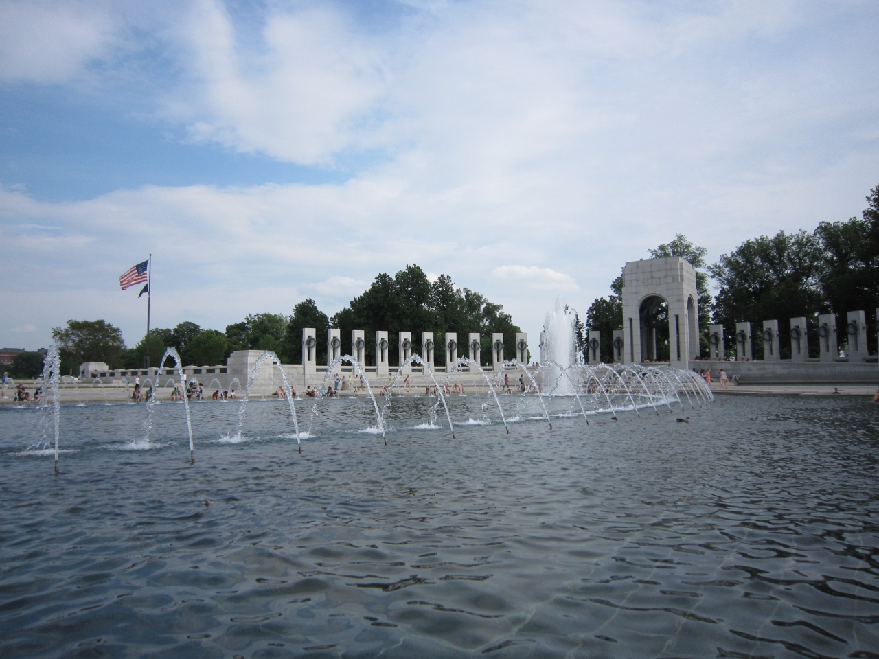 リンカーン記念館まで歩いていくとかなりの距離がありますので、このあたりが休憩場所になるようで、噴水の周りにたくさんの人が腰をかけていました。夏だと裸足になって噴水に足を浸すととても気持ちがいいです。タオル持参がいいかもしれません。- 旅行時期