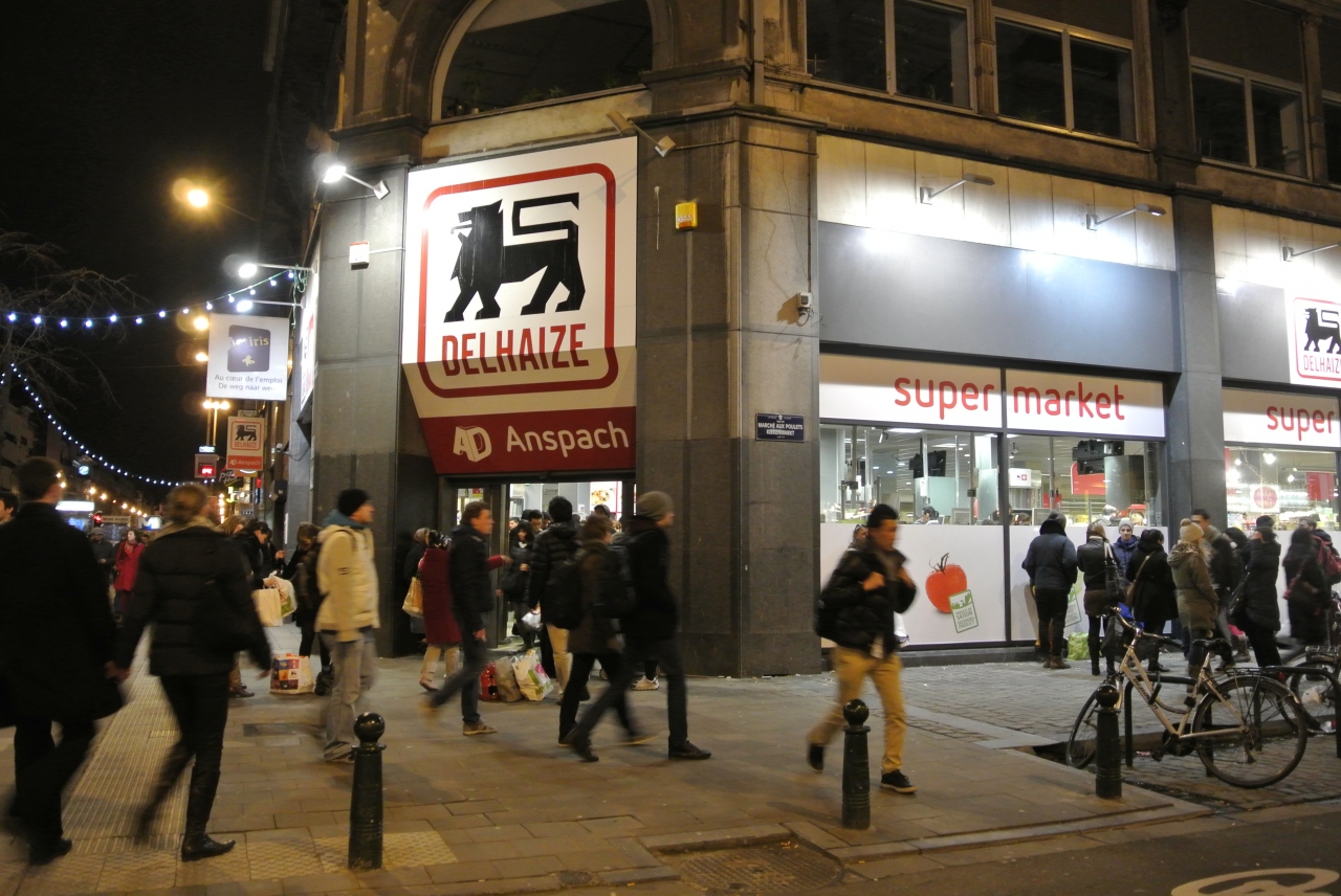 ベルギー内でよく見かけます。ANSPACH店はグランプラスからもわりと近いし、広いです。昔はカルフールの大型店もあったようですが、閉店したようですので大型スーパーを探すとここになるのではないでしょうか。