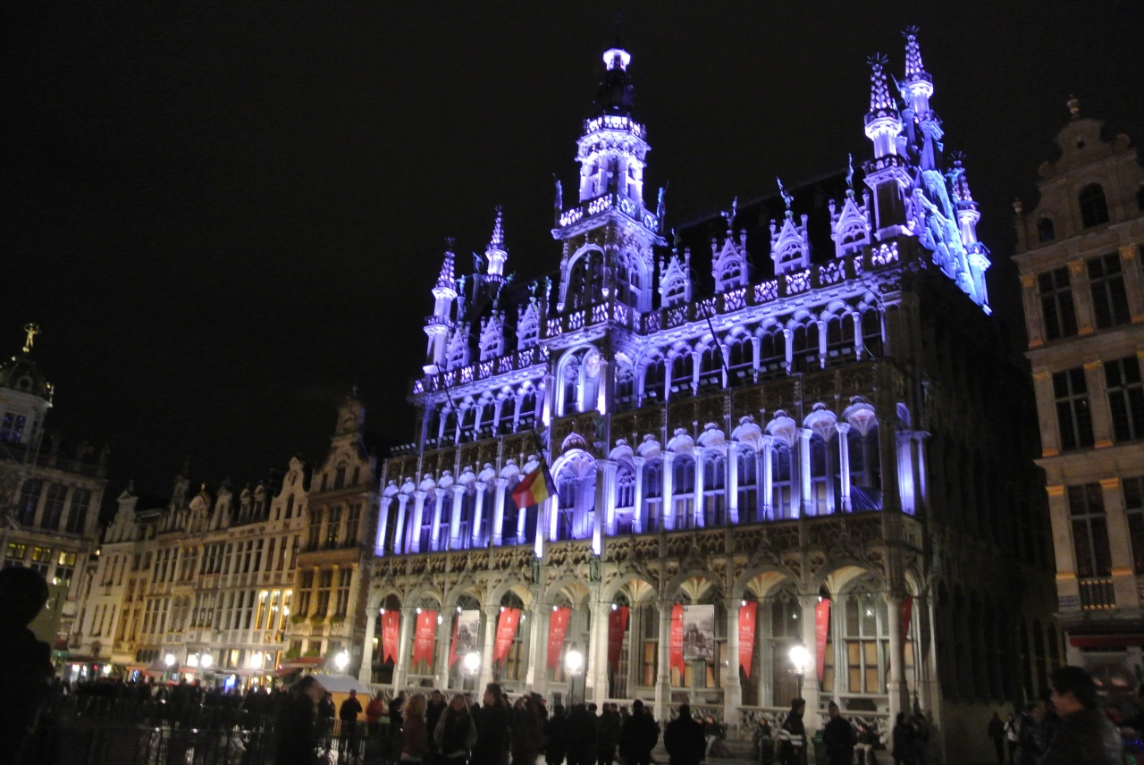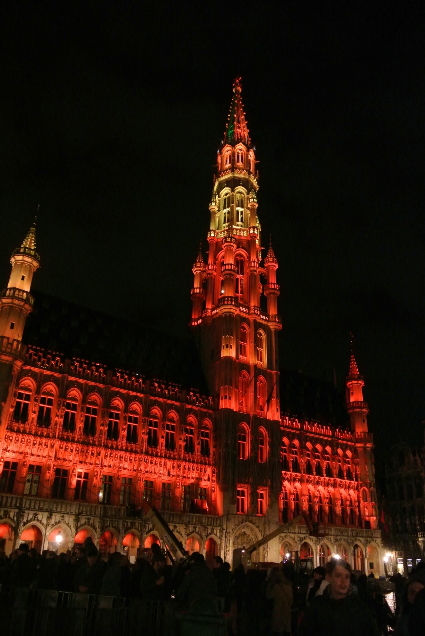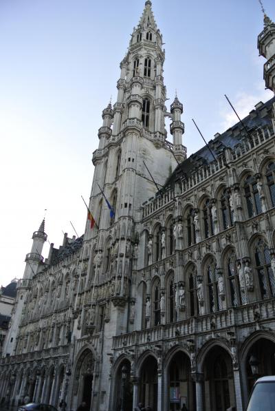 中央の尖塔が印象的で、各所で見かけるグランプラスの写真にも市庁舎の外観が使われることが多いようです。