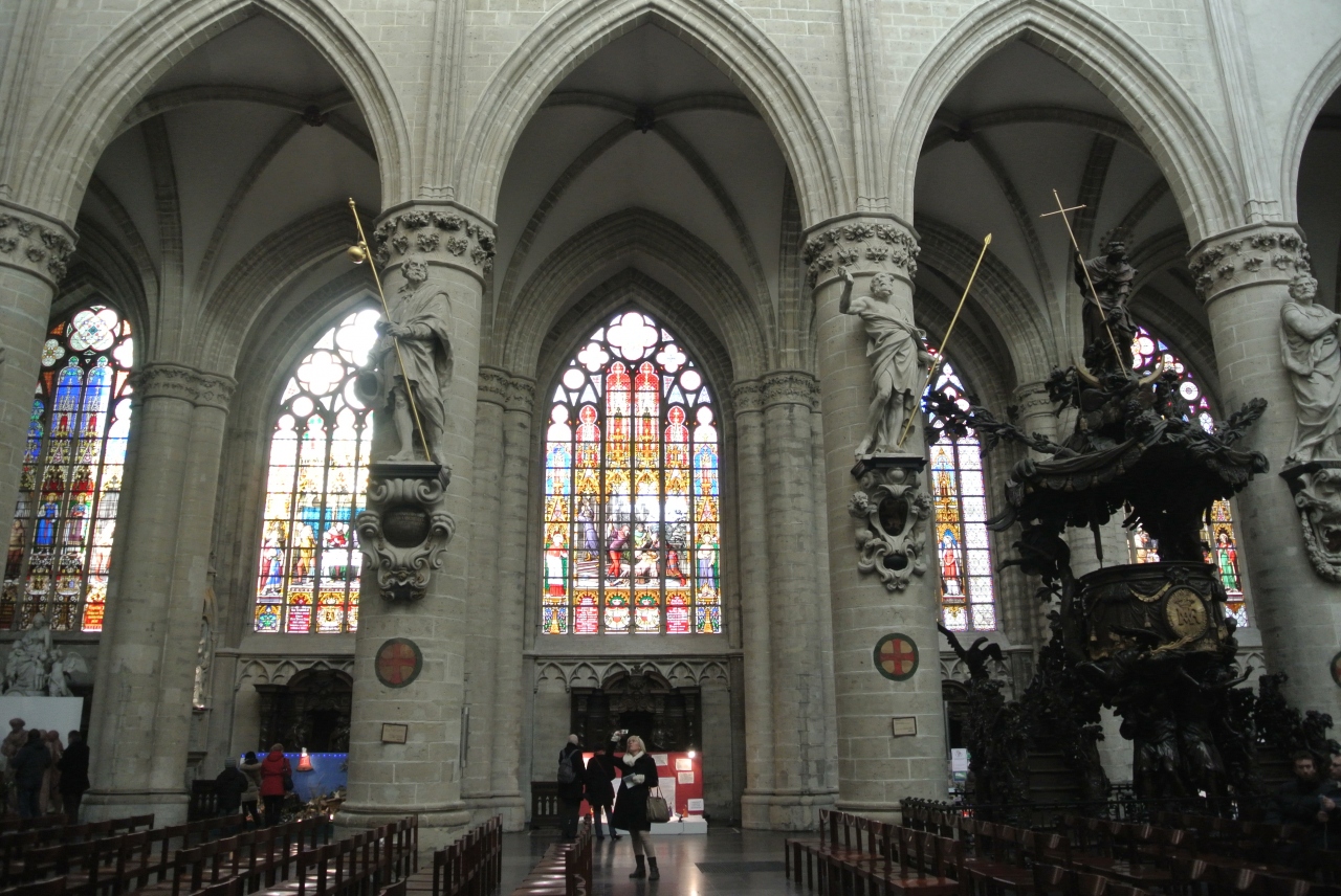 とにかく大きな教会です。今でもベルギー王室の冠婚葬祭の舞台になるようで、とてもキレイです。