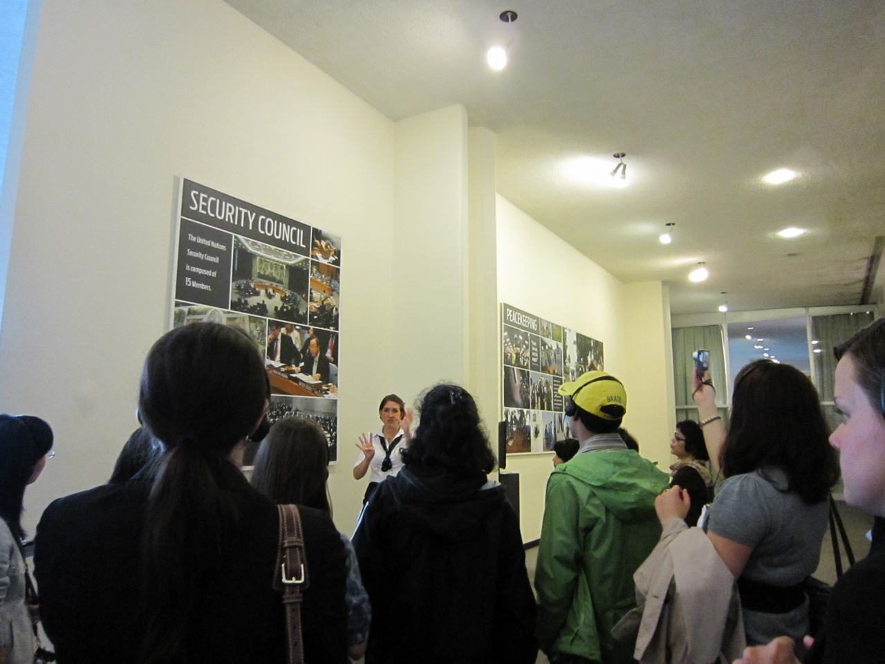 総会の会場はニュースでよく目にする場所です。説明を聞いた後、写真撮影のための時間が少しありました。戦争についてはホロコーストや地雷撤去、原爆の話もされていました。 長崎の浦上天主堂の被爆した聖アグネス像が展示してあります。加盟国からの贈答品はいろいろなところに飾られています。相当力が入っていると思われ、見事な芸術品なので鑑賞していて面白かったです。