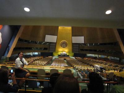 主な説明は、加盟国からの贈答品、国連が取り組んでいる8つの目標、国連総会の会場、戦争についてといった感じでした。8つの目標については丁寧に説明してくれました。「ミレニアム開発目標(Millennium Development Goals: MDGs)」というもので2015年までに達成を目指している目標のようです。