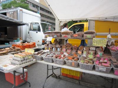 ここで月、水、金、土の朝8時から、グリーンマーケットが開かれています。