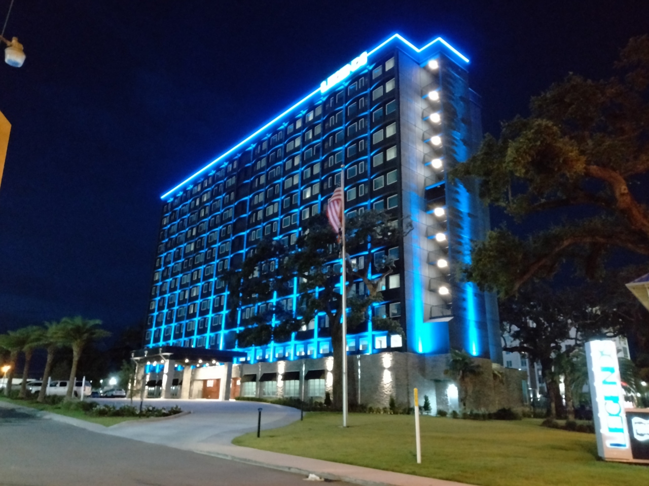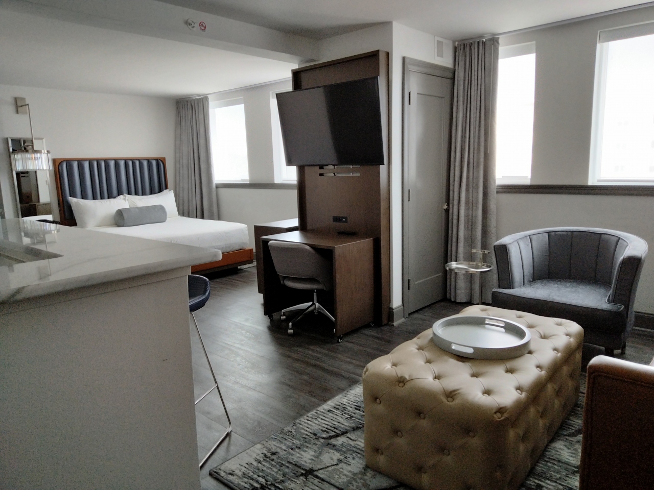 キッチンカウンターの付いた広いお部屋のホテルでした。ホテルの名前のとおりレジェンドたちの写真がたくさん飾られていました。ウエルカムドリンクもついており、暗くなってからもライトアップされたプールで楽しむことができ、とてものんびり過ごせました。