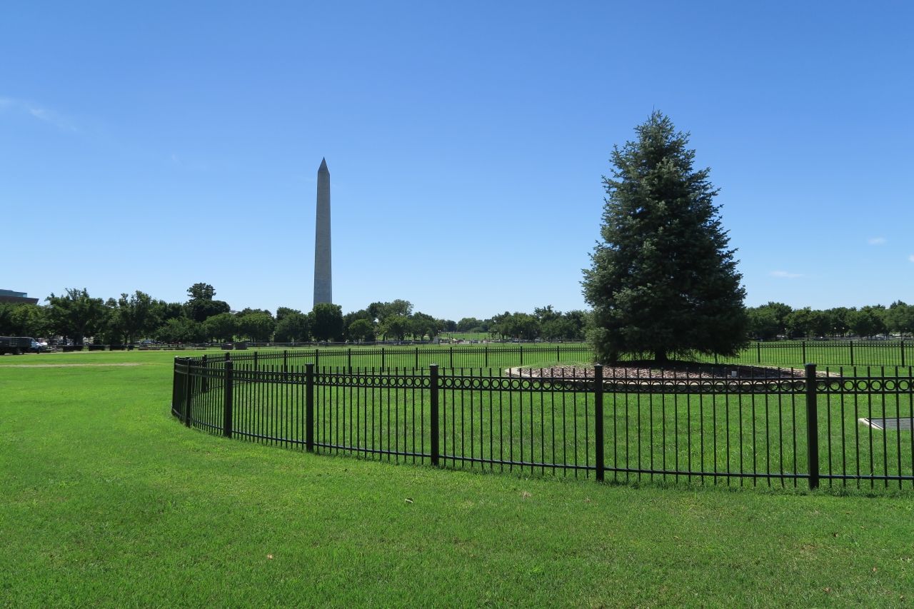 ホワイトハウスの南側の道路沿いにある立派な木です。しっかりフェンスで囲われており、木の下までいけませんが、クリスマス時期でなくともグリーンに茂った木とワシントンモニュメントを一緒に見ることができて、とっても素敵です。