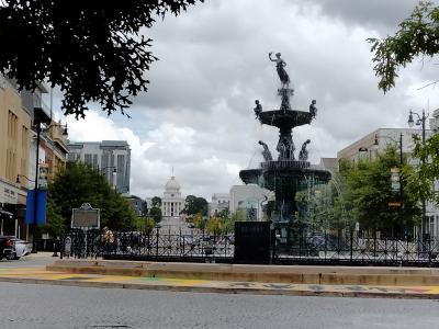 元々この噴水場所には井戸があり水飲み場だったそうですが、その後はモンゴメリーの奴隷貿易の中心的な場所となりました。現在の噴水は立派で素敵な女神像もあり、デクスター通り先に見えるアラバマ州議事堂もきれいに見えます。