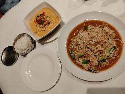 昔の駅舎を使ったレストランで、重厚感のある家具や扉が置かれていました。カレーとパッタイをいただきましたが、パッタイはかなりアメリカ風にアレンジ?されたものでイメージと違いましたが、おいしくいただきました。