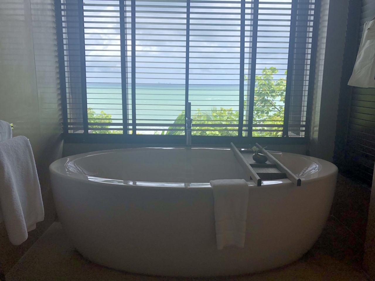このホテルまではバンコクから4時間ほどかかりますが、静かでスタッフの教育、お庭の手入れが行き届いた素敵なリゾートでした。閑散期ということもあり、レストランもプールも空いていましたので、のんびり過ごすことができました。ホテルの部屋からも他の部屋が見えないレイアウトになっており、日常の喧騒から離れ特別な時間を過ごすことができました。ランタ島内は舗装路が悪く、新しいハイエースもかなり揺れ、車酔いしてしまいました。