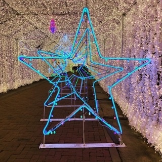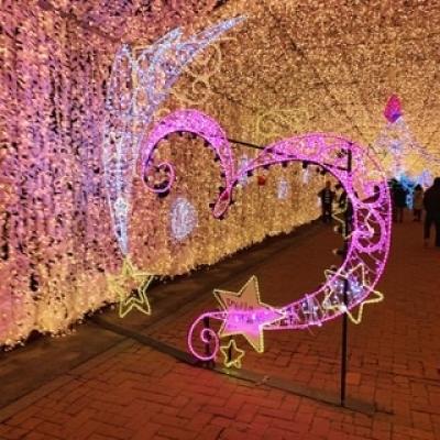 光のトンネル、時間で色が変わりキラキラで綺麗