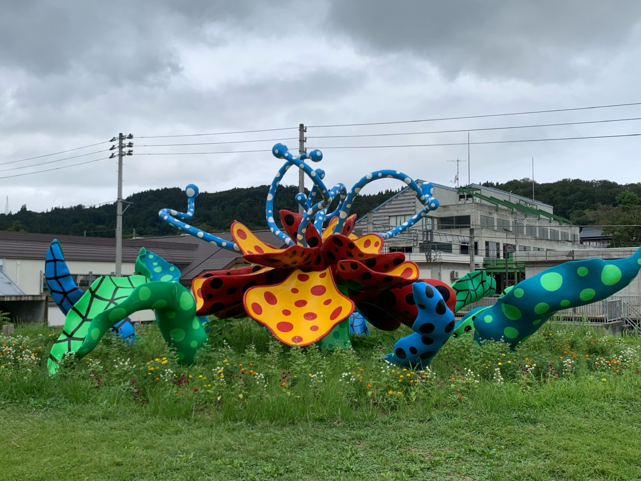 外には草間彌生さんの作品を始めいくつものアート作品が展示されています。