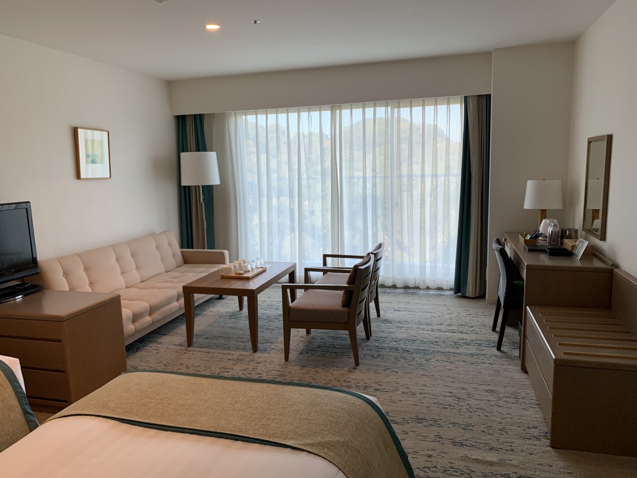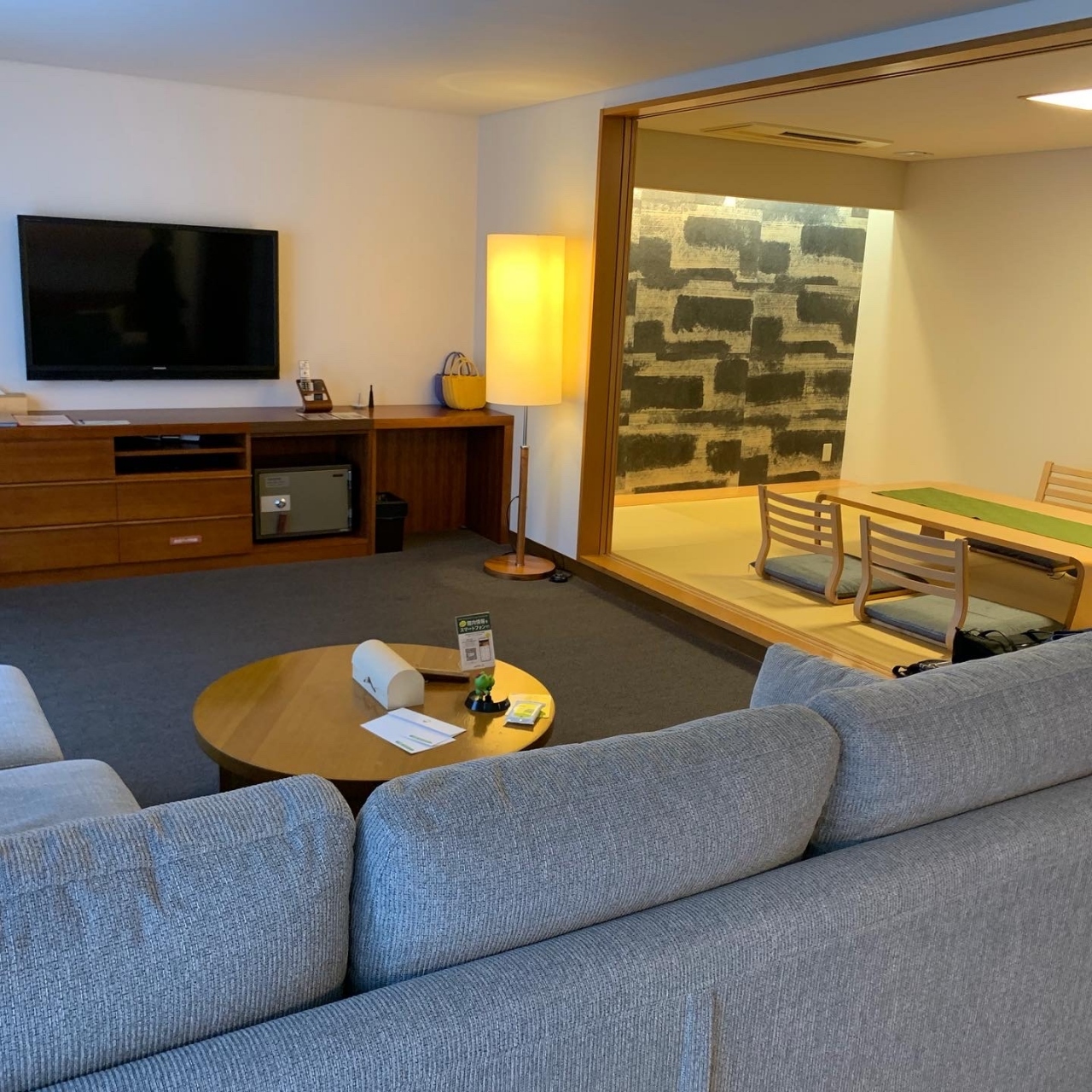 宿泊した和洋スィートの部屋も二人では広さも充分、大きめソファでゆっくり出来ました。