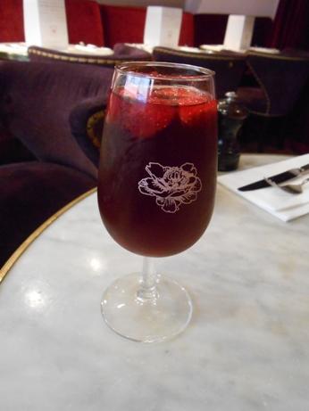 サングリアをオーダー。グラスのバラのイラストがかわいい。