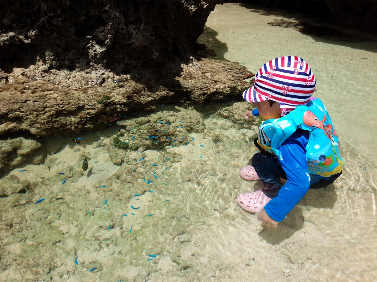 干潮の浜で生き物をみつけて喜んだりしていました。