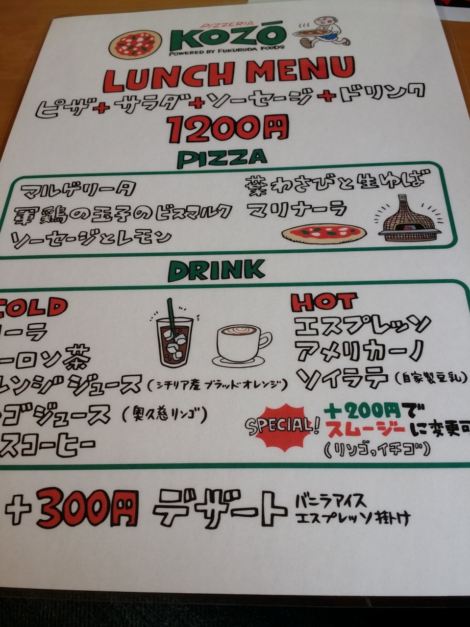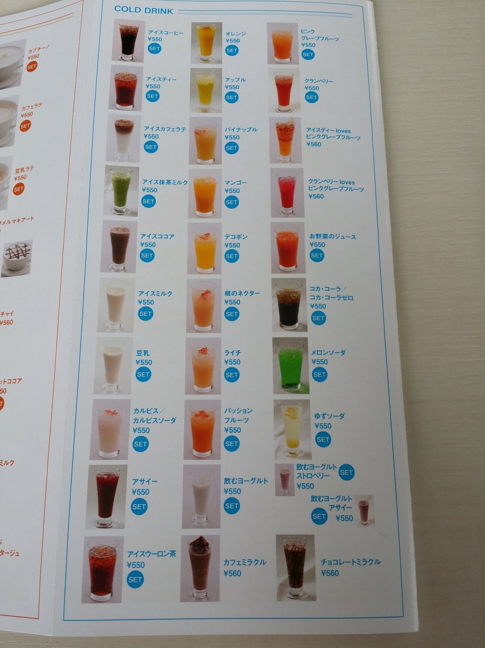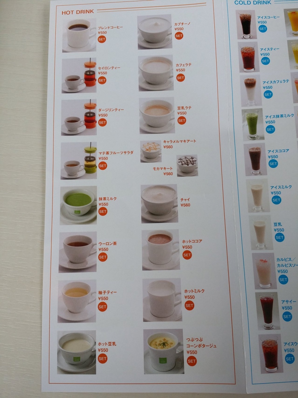 ほとんどの食事とドリンクのセットメニューは500円前後でとてもリーズナブルです。