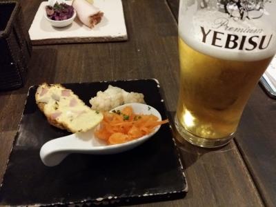 17時から19時までハッピーアワーがあってビールと3種のおつまみがついて500円うれしい企画です。