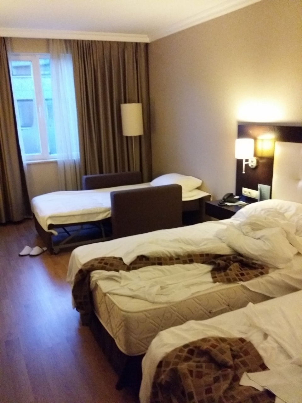 無料の水があります。スリッパも置いてあります。ただイスタンブールといっても周りには何もありません。- 旅行時期