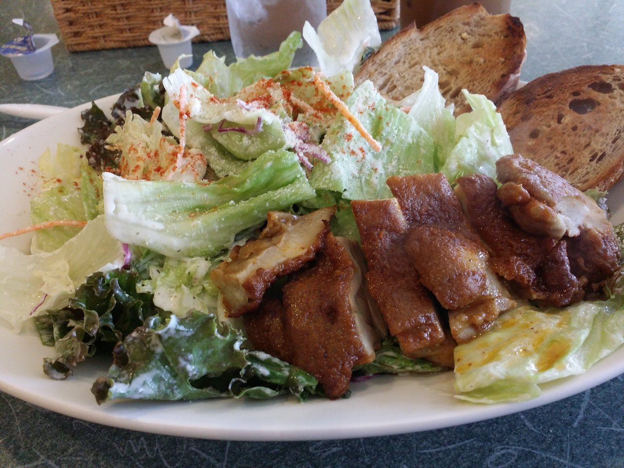 メニュー表では鶏肉がパリパリに焼いてあるように見えたのでシーザーサラダのメニューを頼んだのですががっかり。