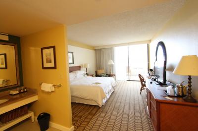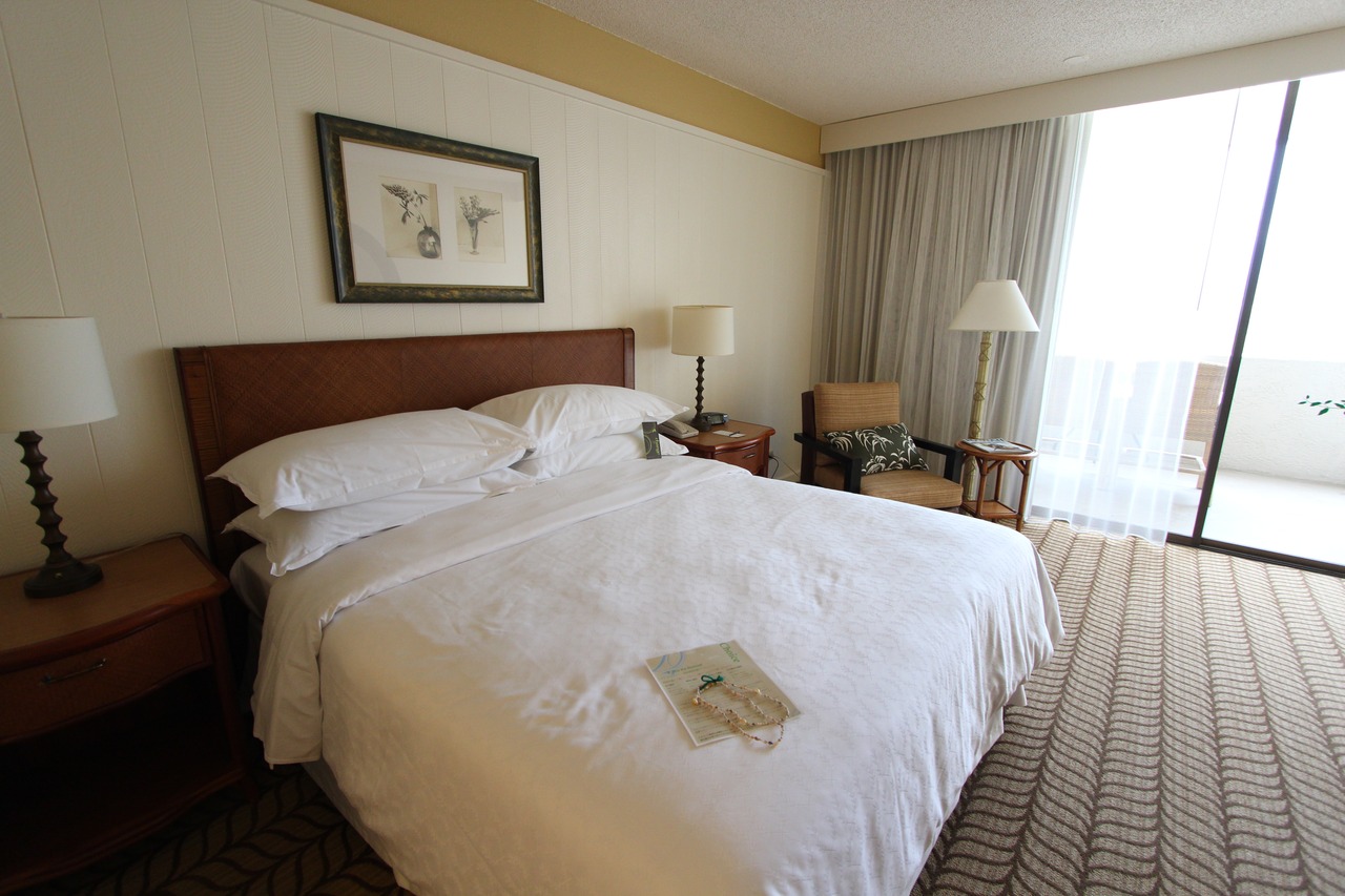 部屋の指定はしてなかったのですが、ラナイからは少しですが海も見え、海と山両方楽しむことができるお部屋でした。客室はとても広くスーツケース二個余裕で広げることができます。