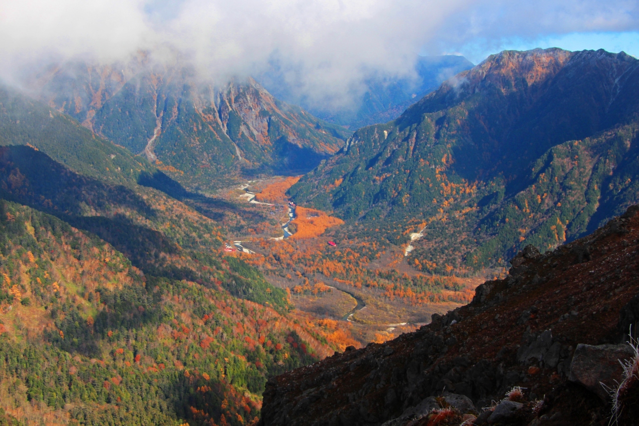 結果的に上高地の登山口から歩き始めて、目的は達成でき、上り・下りの双方で上高地の紅葉とついでに岐阜サイドの新穂高温泉郷のパッチワークのような紅葉景色も堪能できたのですが、ただ一つ、想定外だったのは初心者コースと聞いていたので、まさか垂直に近い状態の梯子や鎖があるとは思っていなかった点。