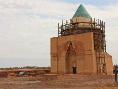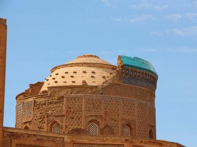 クフナ・ウルゲンチ遺跡にあるトラベグ ハヌム廟(トレベクハニム廟)は遺跡の中の一番の見所と言ってよい処で、ペルシアの技術を用いた2重ドームのクブラ(キューポラ)が美しく残っています。