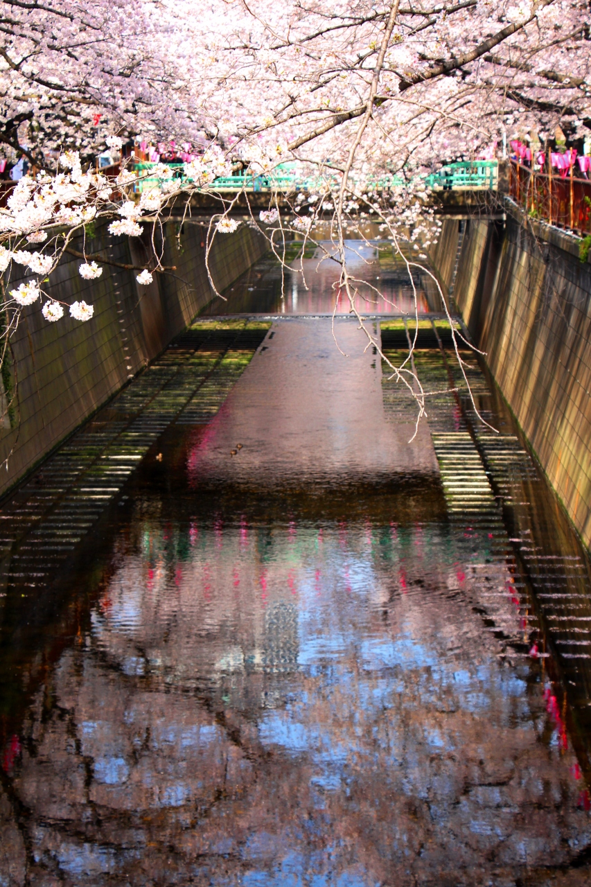 ボートの営業が終了し、静まり返ったお堀の水面へとリフレインする桜の色と夜の闇の対比はお勧めですよ。- 旅行時期