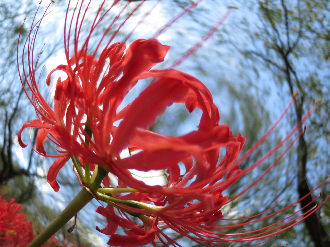 例えば、曼珠沙華の花一つ一つを観察したり写真に撮りたい場合は、午後の太陽光の真下では花色が白く飛んでしまい、その表情を上手くとらえることはできない。