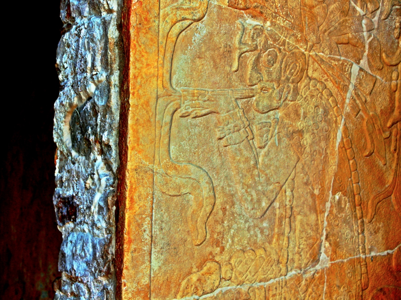 マヤ文字はその構造が非常に複雑でまだ解明されていない文字の方が多いのだが、その解読に役に立ったのが、レリーフにマヤ文字と共に刻まれた古代の壁画だ。