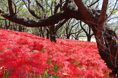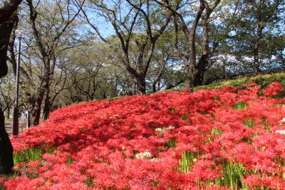 今年の幸手権現堂の曼珠沙華ですが、一番の見所の斜面が真っ赤に彩られ、最盛期を迎えています。