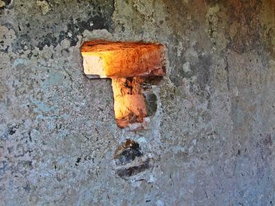 この穴については諸説あり、ただの風通し用の窓説も有りますが、突拍子もないものとしては財宝の隠し場所の鍵穴だった…なんていう説もあります。