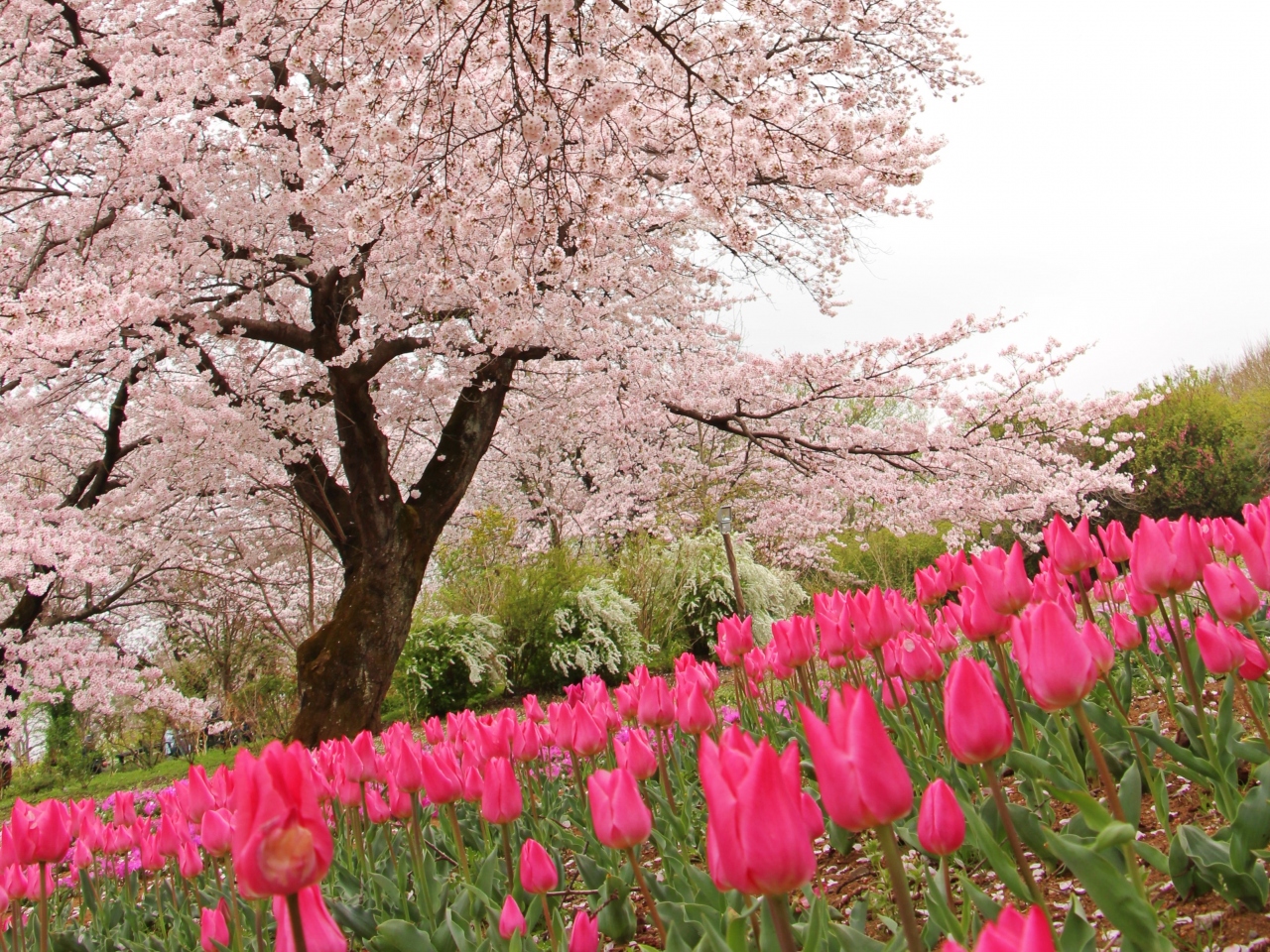 菜の花の黄色、桜のピンク、そして青空の三色ストライプはなかなか他では見ることのできない光景で、見応えがあります。