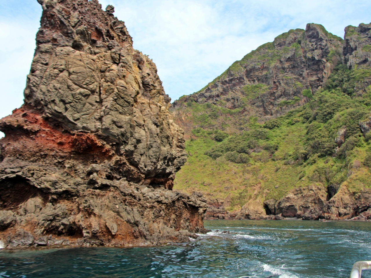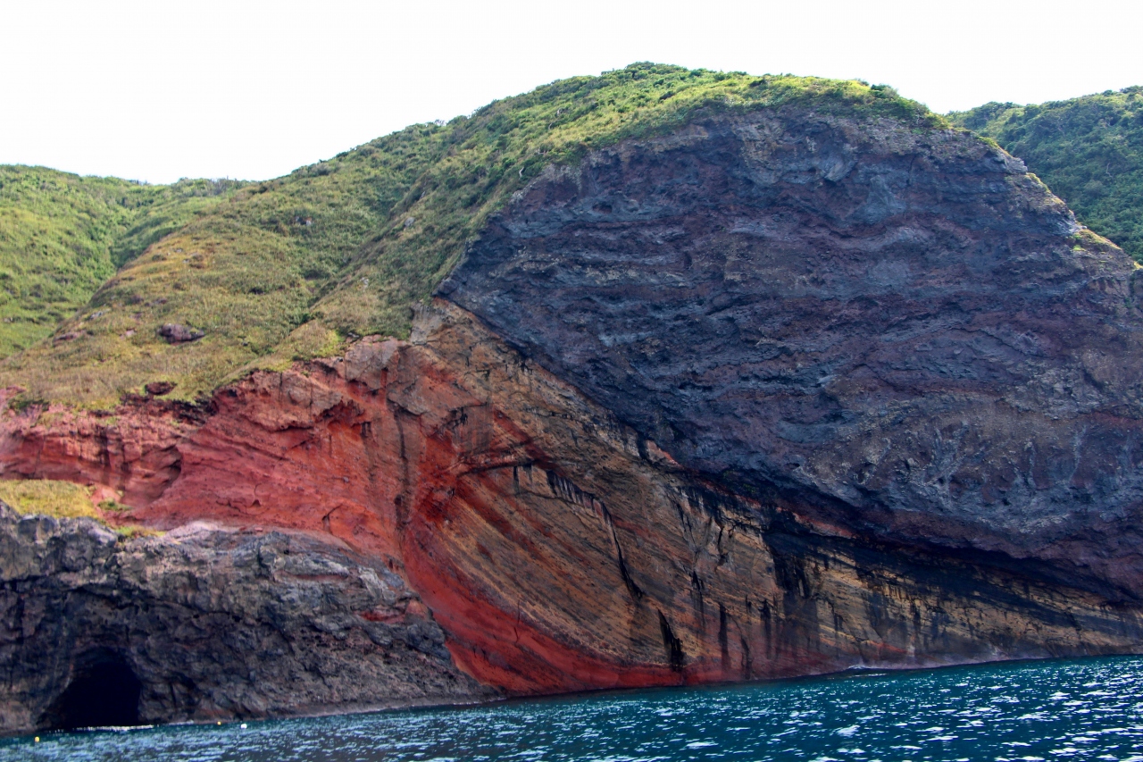 西ノ島の北の海をクルーズ観光船【国賀めぐり定期観光船】で廻る時、目に入ってくるのが不思議な赤壁の地層。