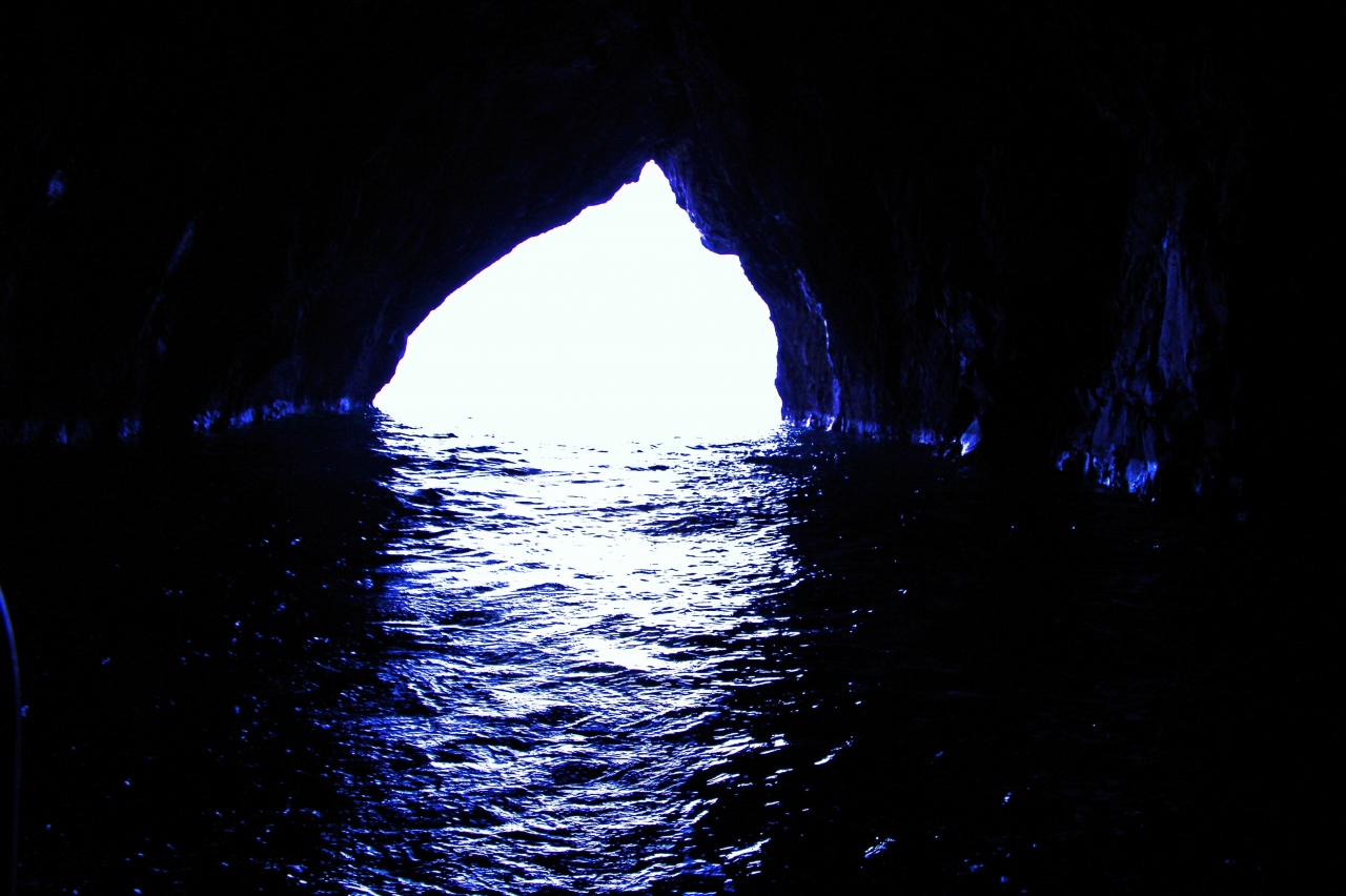 真っ暗なトンネルを抜ける時に見えてくる出口側の岩屋の景色…それが青一色の世界とななるそうですが、私が行った時は波が若干あり岩屋の奥には進むことができませんでした。
