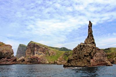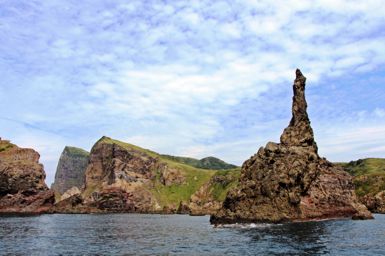 西の島の北側にあるローソク岩(別名:観音岩)という名前の海から突き出た1本岩。