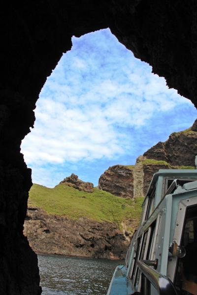 【滝見の岩屋】は、西ノ島でのクルーズ観光船【国賀めぐり定期観光船】で見ることのできる西ノ島の北崖にある石アーチで、アーチの下を観光船が通りその景観を楽しみます。