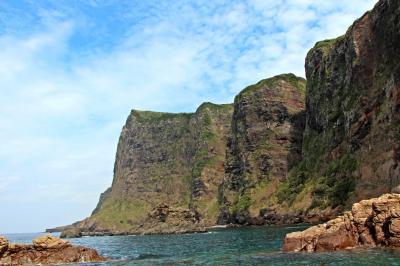 溶岩岩はあまり硬くはないので風や波の刺激に弱く、外海の荒々しい波と北風にゆっくりと削り取られ、現在見られるような東京タワーほどの高さがある切り立つ崖を作り上げました。