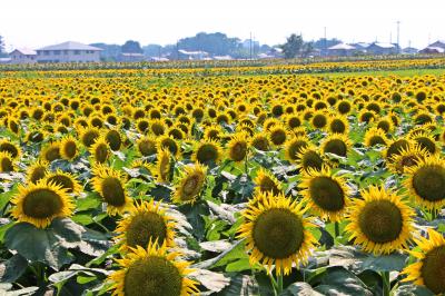 休耕田を利用しヒマワリ畑としたようだが、一面に咲く黄色い花の姿はかなり圧巻で、見ごたえのある光景だ。