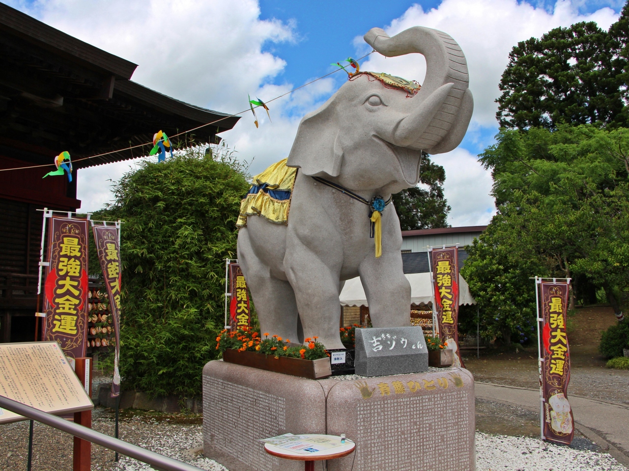 ・本殿の前の二頭の狛象は宝くじを買う人に大人気