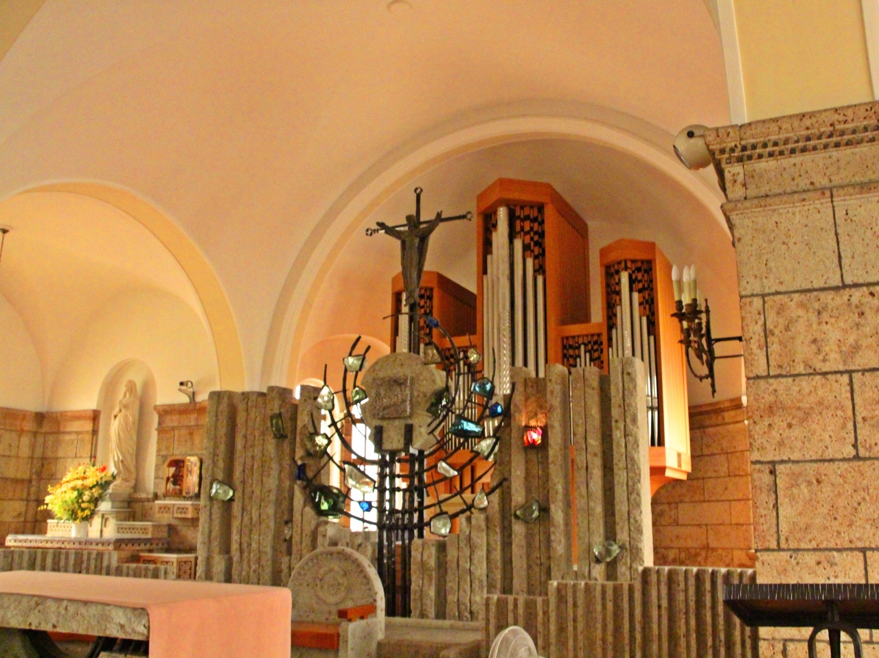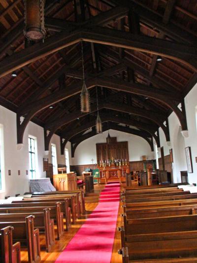 大谷石のゴシック教会ですが、内装は木造で温かみがある