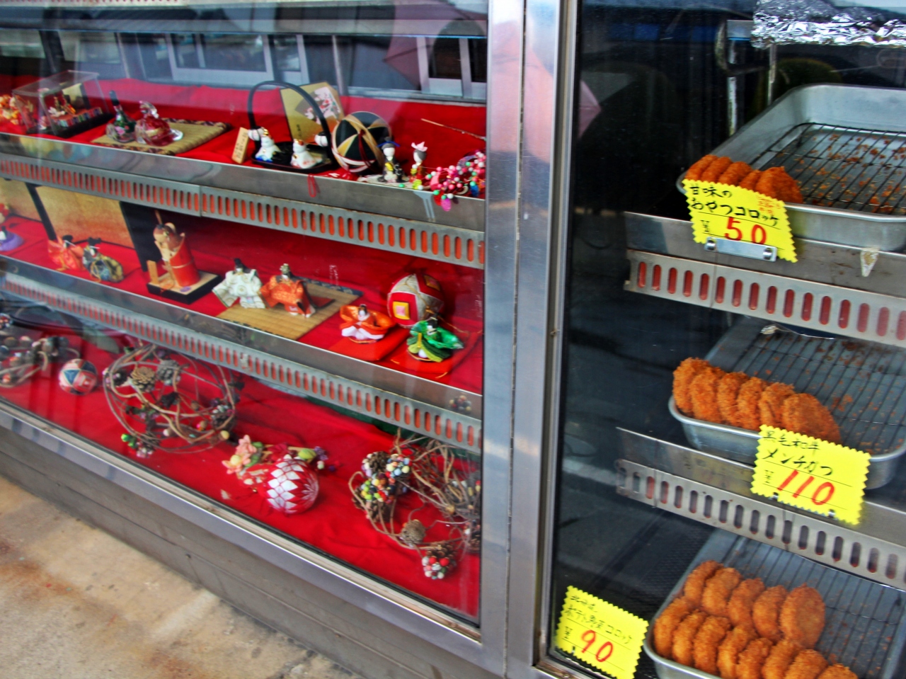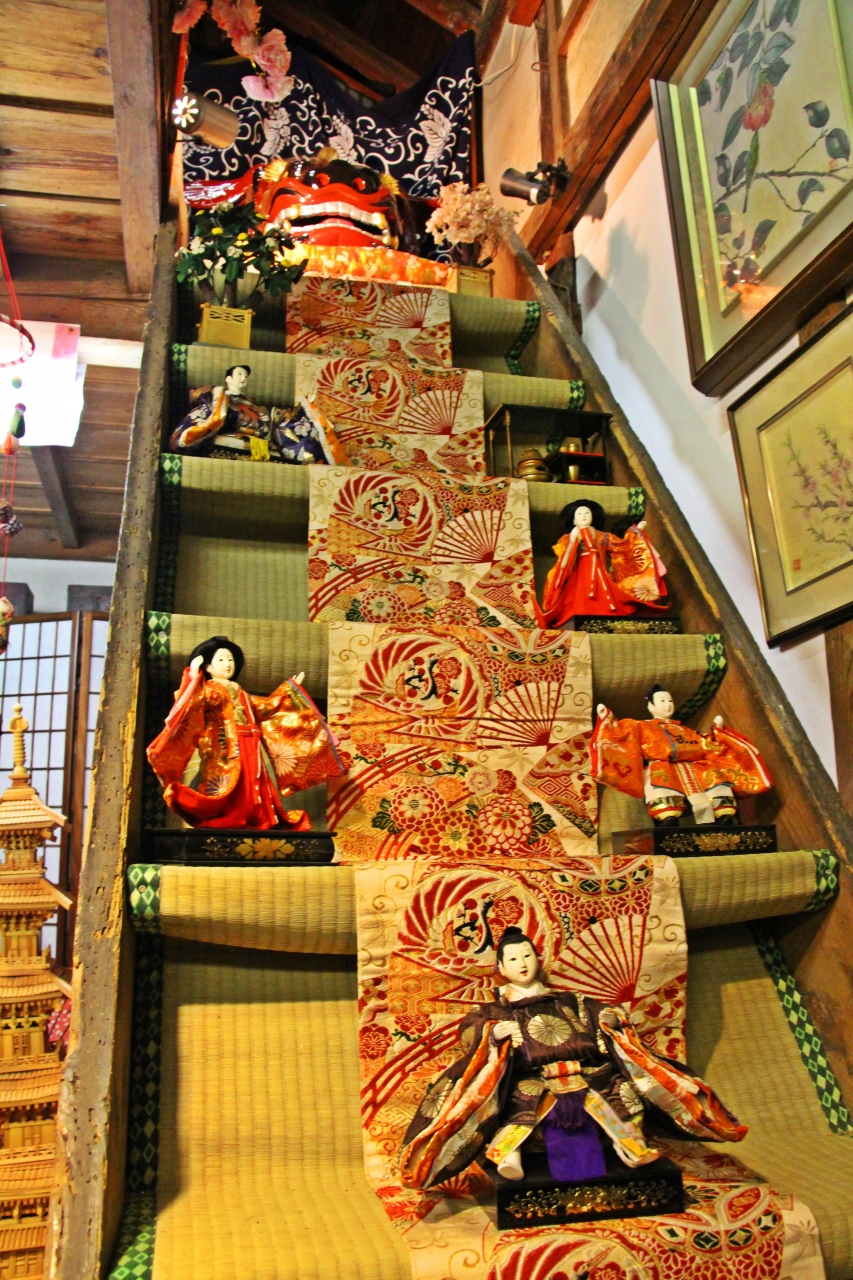 桜井精肉店にも江戸時代・享保時代のお雛様が飾られていて、そのお顔と着物は、私が見せて頂いた中では一番の迫力でした。
