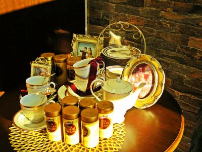 カップやソーサーはポーランドの伝統柄の食器で、落ち着いた雰囲気の店内でゆっくりと大人同士の会話が出来るお店です。