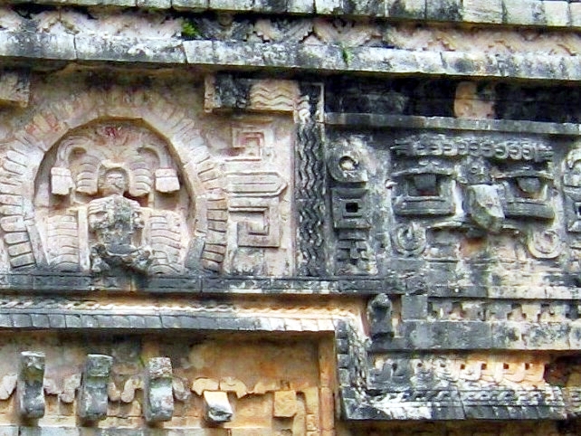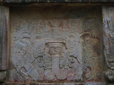 また、尼僧院の建物の真ん中少し上の壁にはジャガーの様な顔をした不思議な人型のレリーフが彫刻されている。