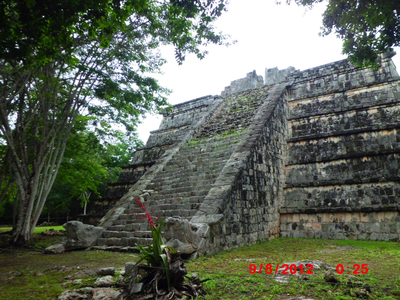 蛇の頭部が付いたピラミッドはミニ・ククルカン神殿の様だが、この【高僧の墳墓】と呼ばれるピラミッドが作られたのは、旧チチェン文明時代で、有名なククルカン神殿よりも500年ほど昔のピラミッドだ。