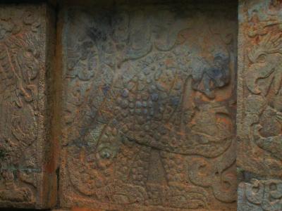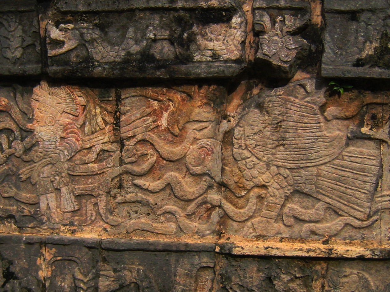 チチェン・イツァー遺跡にある【鷲とジャガーの神殿】と呼ばれる建造物(新チチェン文明時代のモノ)は四角いステージの様な構造物で、その周囲に鷲とジャガー、そして戦士の姿がレリーフとして彫り込まれている。