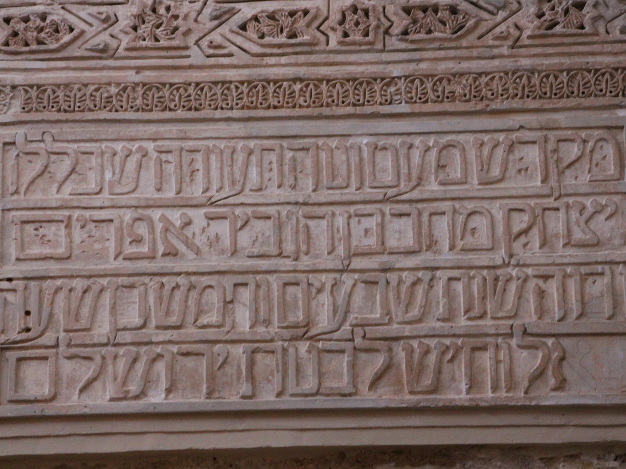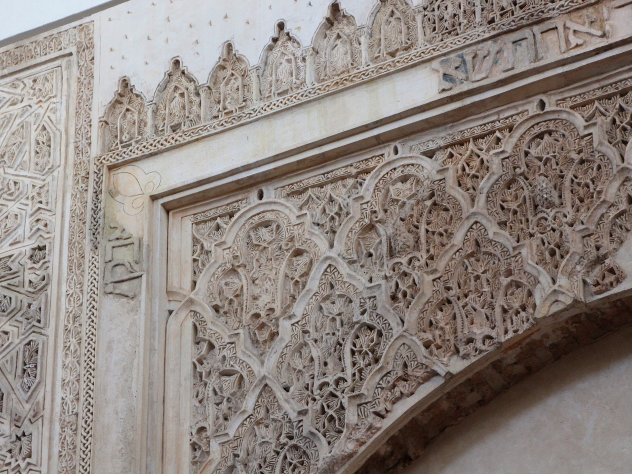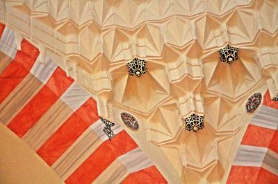 モスクの天井装飾は非常に手が込んでいて、2階のテラスの下の壁やテラスの欄干の模様も美しい。