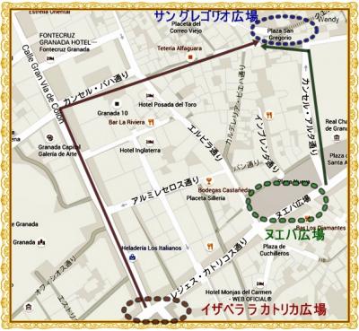 そこで、私達が歩いたアルバイシン地区経由サン・ニコラス展望台への二つのルートを紹介したいと思う。