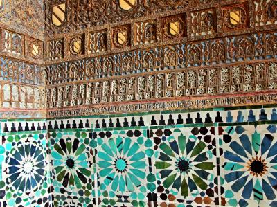 玉石で作られたモザイク模様が一面に見える広場、高い白い塀垣の上から零れおちるように咲く花々の姿、入り組んだ路地、路地を曲がると現れるアラブの意匠を残す門…。