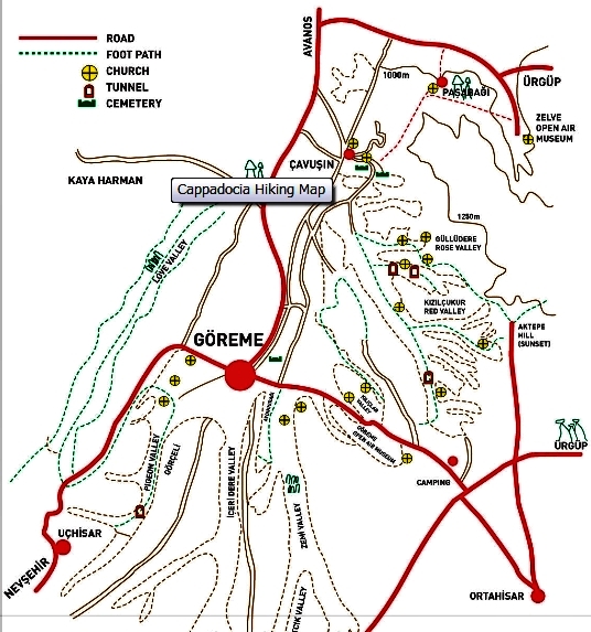 また、ウチヒサルにはギョレメパノラマのトレッキング道(ギョレメのオトガルから徒歩2時間のトレッキング)でも行く事が出来る。